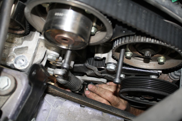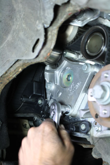 Et il faut s'occuper du tendeur de la courroie de distribution :