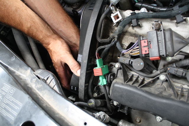 Et ensuite, on fini de démonter le galet tendeur de la courroie d'accessoires qui nous permet du même coup de l'enlever.