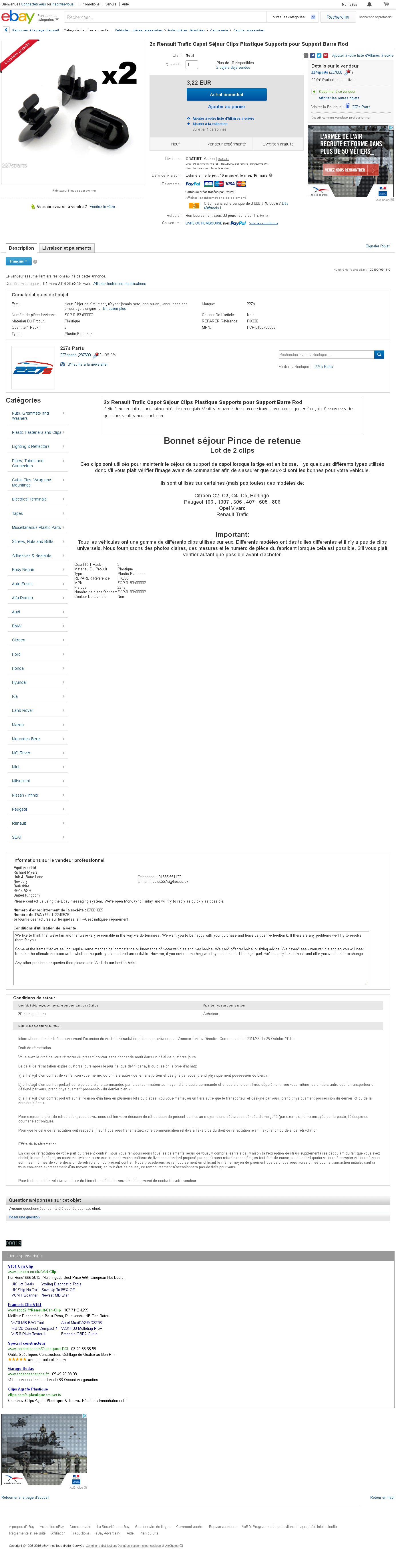 Vendu par paire (ou plus !), ce clip est commun à des Renault (Trafic), Peugeot et Citroën : http://www.ebay.fr/itm/2x-Renault-Trafi ... SwQItTz9Jn