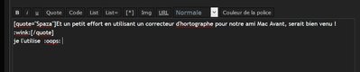 je l'utiliseSpaza a écrit :Et un petit effort en utilisant un correcteur d’orthographe pour notre ami Mac Avant, serait bien venu !