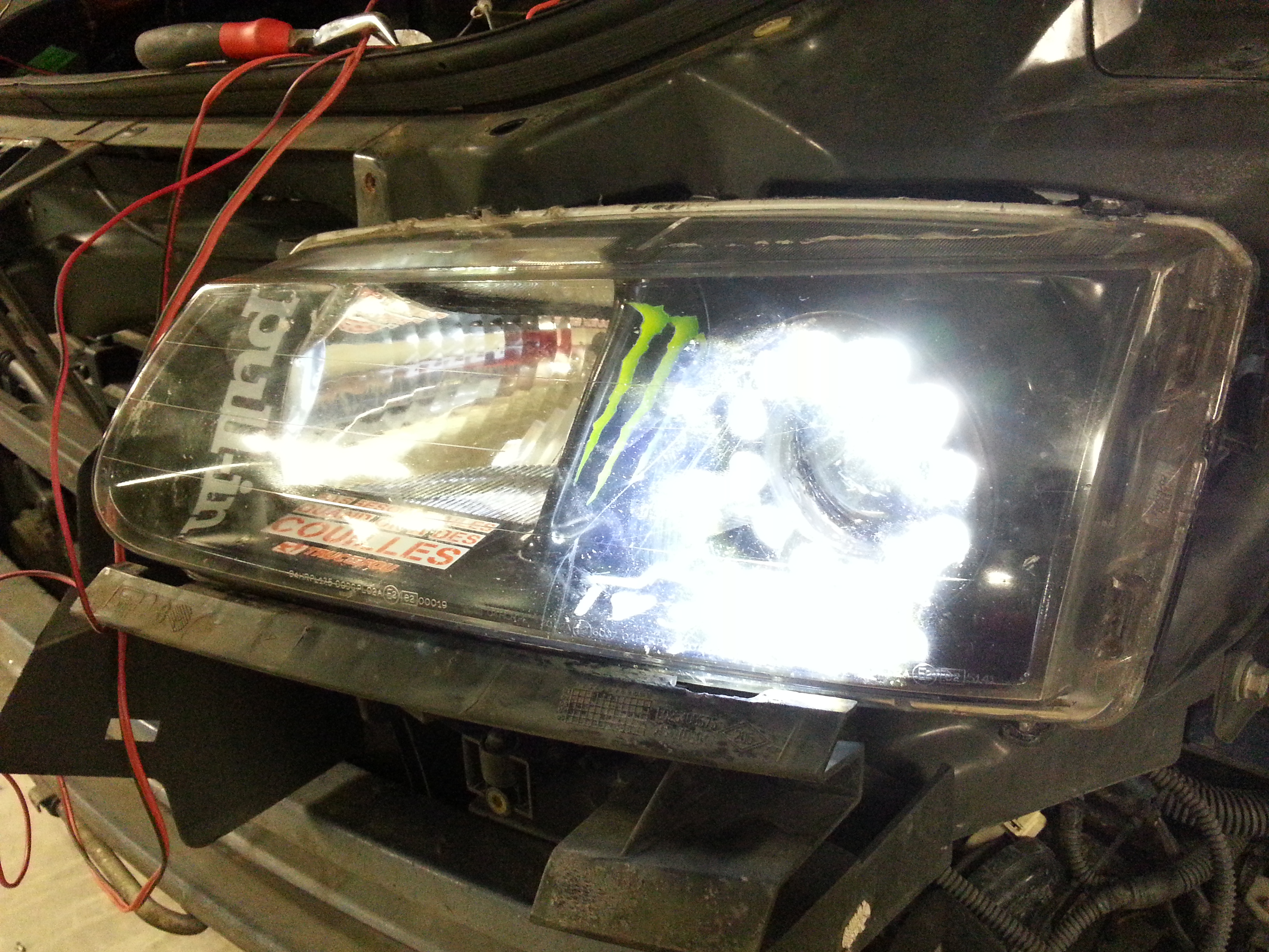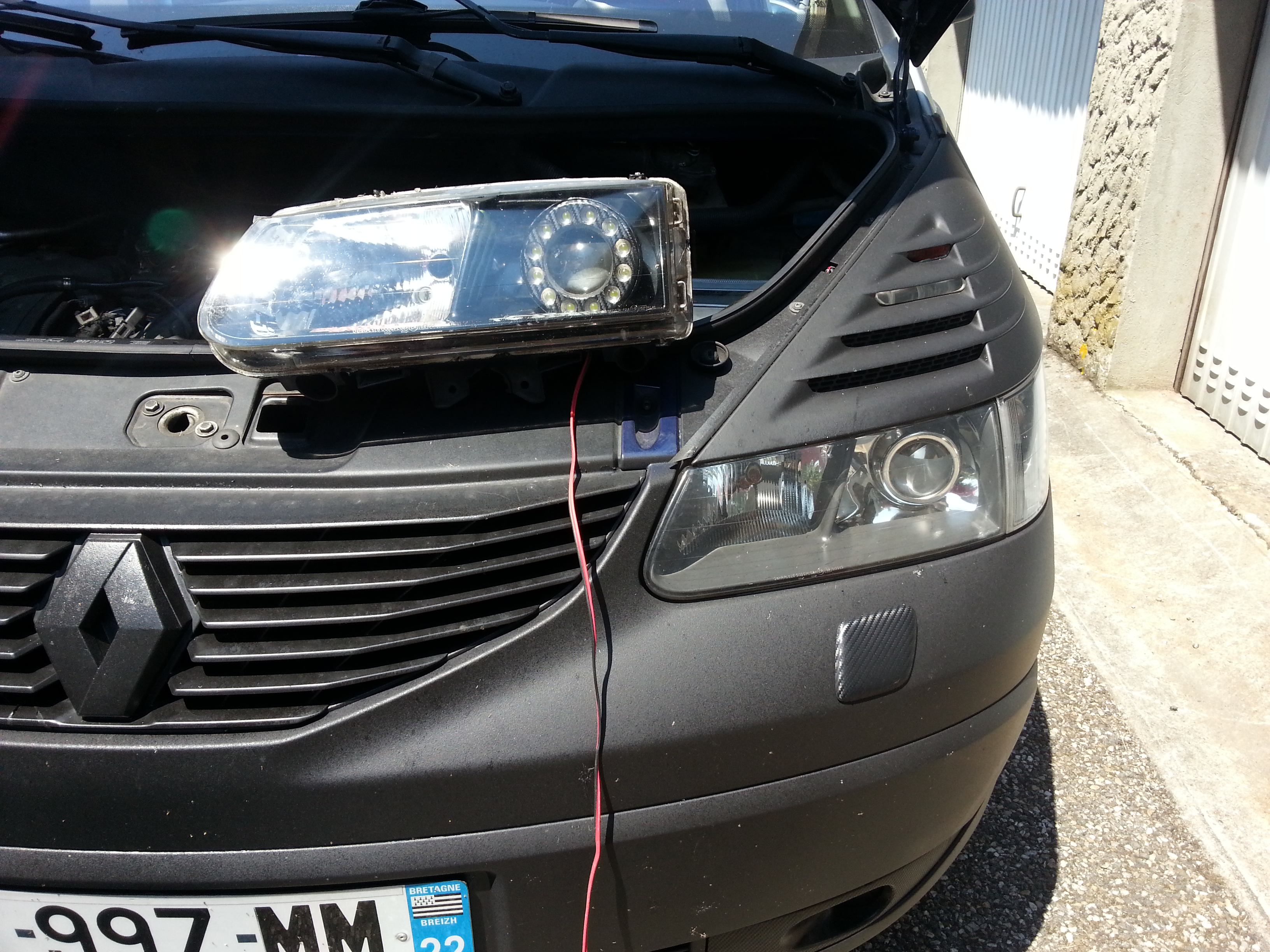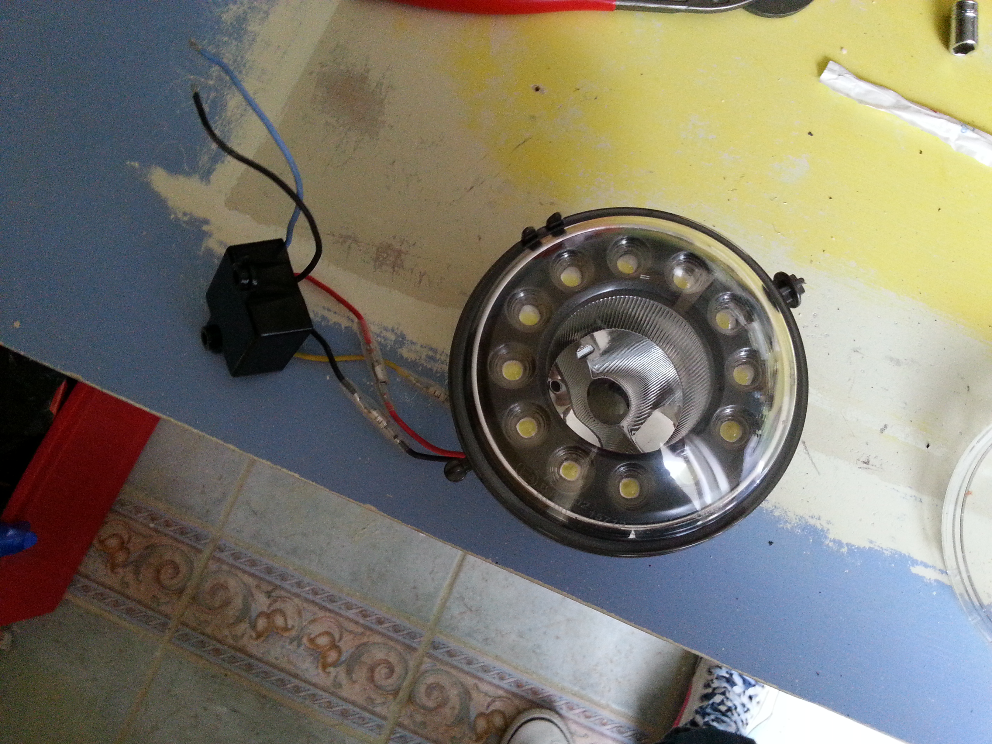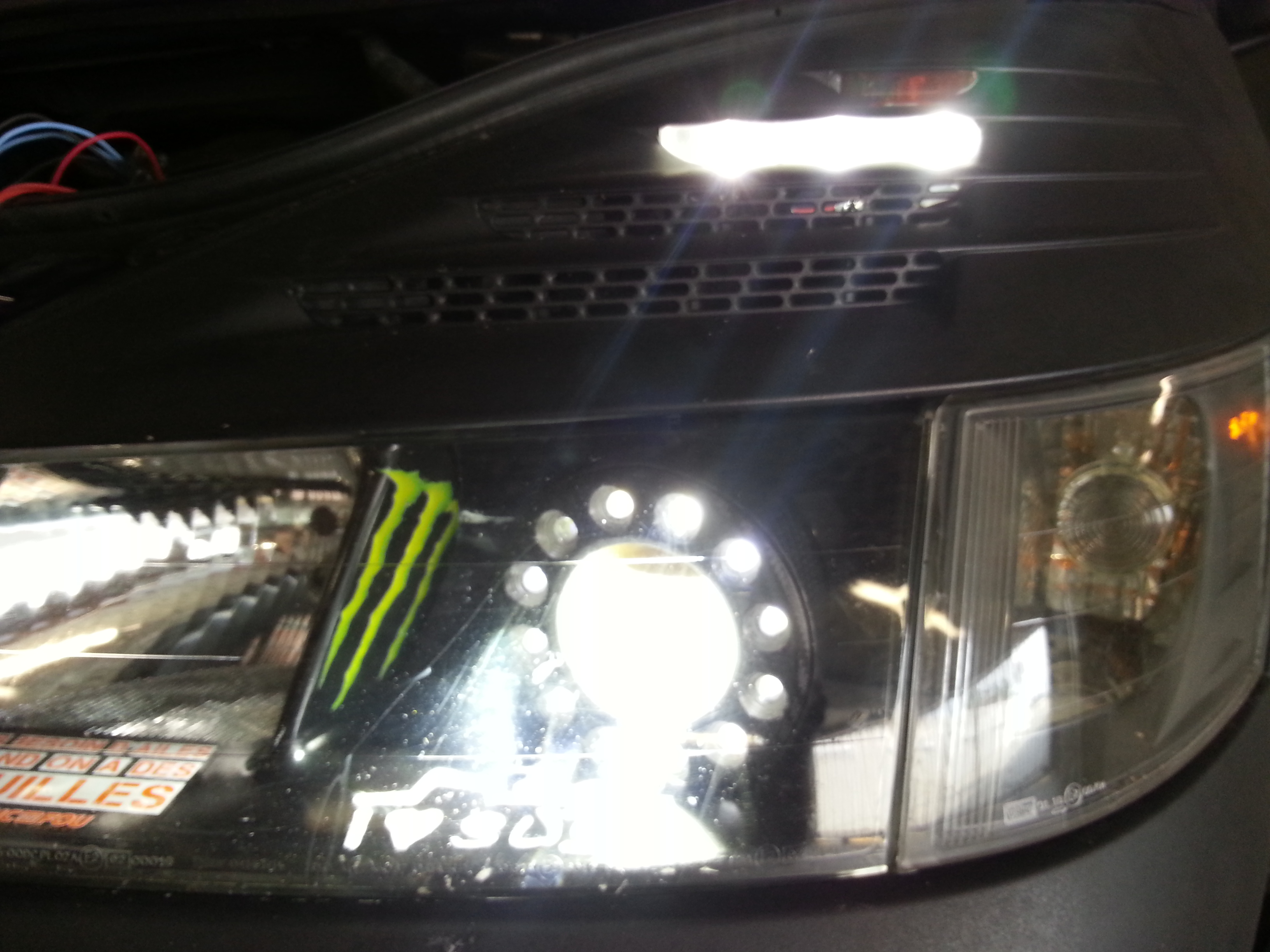 Les feux de jour sont issus d'une mini, à l'origine je voulais remplacer les antibrouillard d'origine par ceux ci mais je ne les ai pas trouvé assez original alors je me suis dit, pourquoi pas dans les phares d'origine, et c'est parti...
