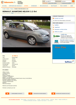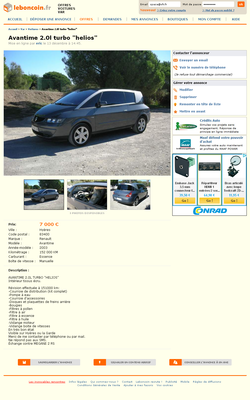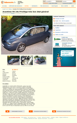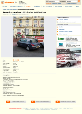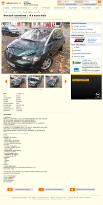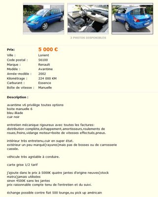 Pour une première visite je suis tombé sur un véhicule qui m'a paru pas trop saint , rétro exterieur D qui ne tenait que sur son axe de pivot, jeu cognant dans les deux roues avant ( roulements ou biellette de direction ), léger choc AR PC AR fendu et pions de fixation manquant, jeu de capot AV pas régulier suppose petit choc réparé sans soins , pneu AV à changer, véhicule dénonçant un bon nombre de raccord peinture, après quoi j'ai préféré interrompre mes investigations , donc véhicule vendu effectivement par un marchant qui a, après visite , négocié, c'est la fin d'année on peut le bradé ( prix sur LBC 4900€) , désolé je préfère continuer mes recherche et ne pas m"arrête sur la 1 ere visite , j’espère que la prochaine sera plus motivante car il est vrai que ce sont des véhicules de plus de 10 ans , mais je reste optimiste car j'en ai déjà croisé dans la rue dans des états plus que bien entretenus .