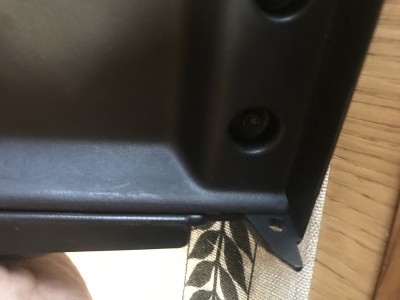 Je re-démonte et constate qu'un des pions est plus gros que le trou du couvercle; on attaque le pion à la lime à ongle pour bien arrondir le pion au diamètre voulu. Pièces démontées cela semble bien. Donc je refixe la charnière, après 15 minutes force est de constater qu'on ne peut pas forcer sur celle-ci pour insérer les pions dans les trous du couvercle.
