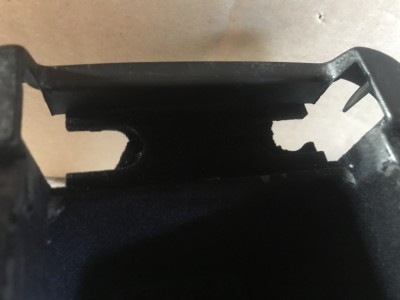 Donc dans un premier temps avec de la colle contact, je recolle les 2 morceaux cassés sous les vis Tork qui tiennent la charnière. Voici les pièces qu'il faudra monter Il faudra d'abord récupérer les attaches métalliques sur l'ancienne charnière et les mettre en place sur la nouvelle pièce Avec la charnière à axe (pièce supplémentaire pour renforcer le système) sont livrées 2 vis plus longues pour la fixation sur l'accoudoir (elles sont déjà en place). Pour l'autre côté on reprend les Tork d'origine et je conseille d'ajouter des rondelles surtout quand le support d'origine a dû être réparé!