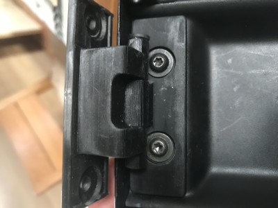 j'ai reçu les pièces commandes fabriquées en imprimante 3 D. L'idée de la charnière additionnelle est intéressante et je me dis qu'avec quelques vis Tork à visser, je devrais faire cela en 15 minutes maximum.