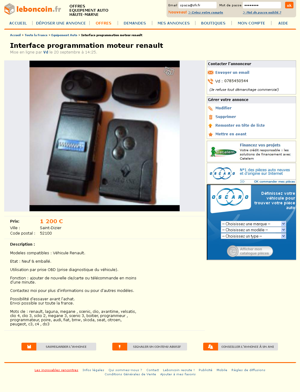 Mais comme je veux privilégier la solution d'origine, j'attends d'abord la réponse du SC Renault puis, si c'est négatif, je verrai avec Sécuriclé s'ils arrivent à me programmer une de leurs clés (sans télécommande au prix de celle qui l'a...
