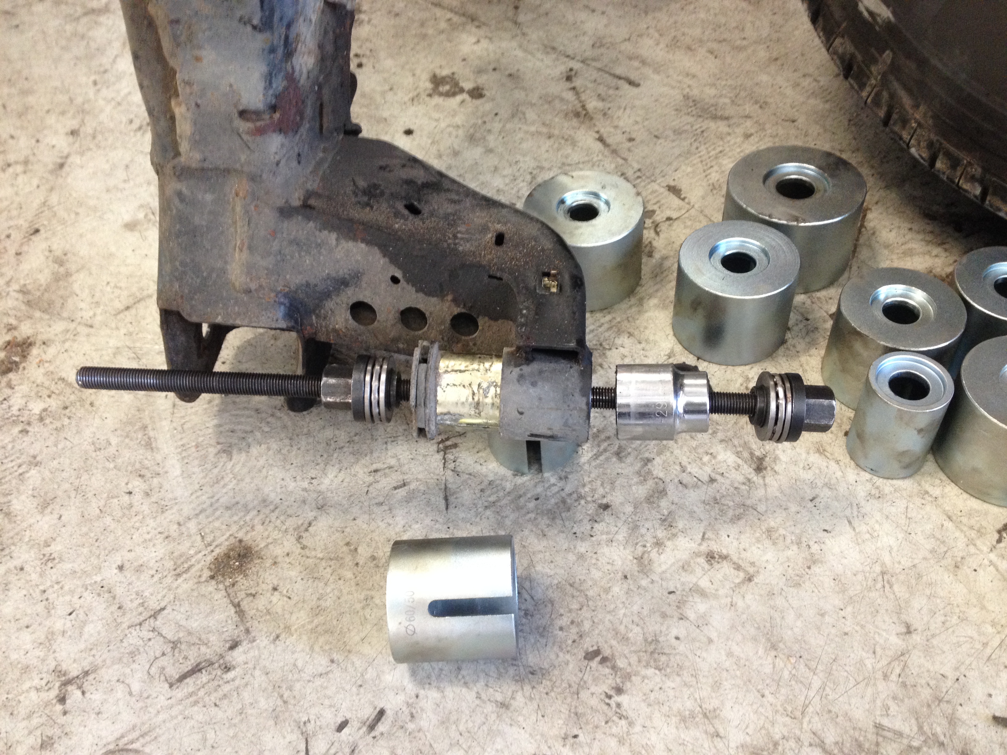 Petit boulot aujourd'hui pour valider le démontage des silent-blocs....nickel ça sort facile avec les extracteurs qui vont bien....!