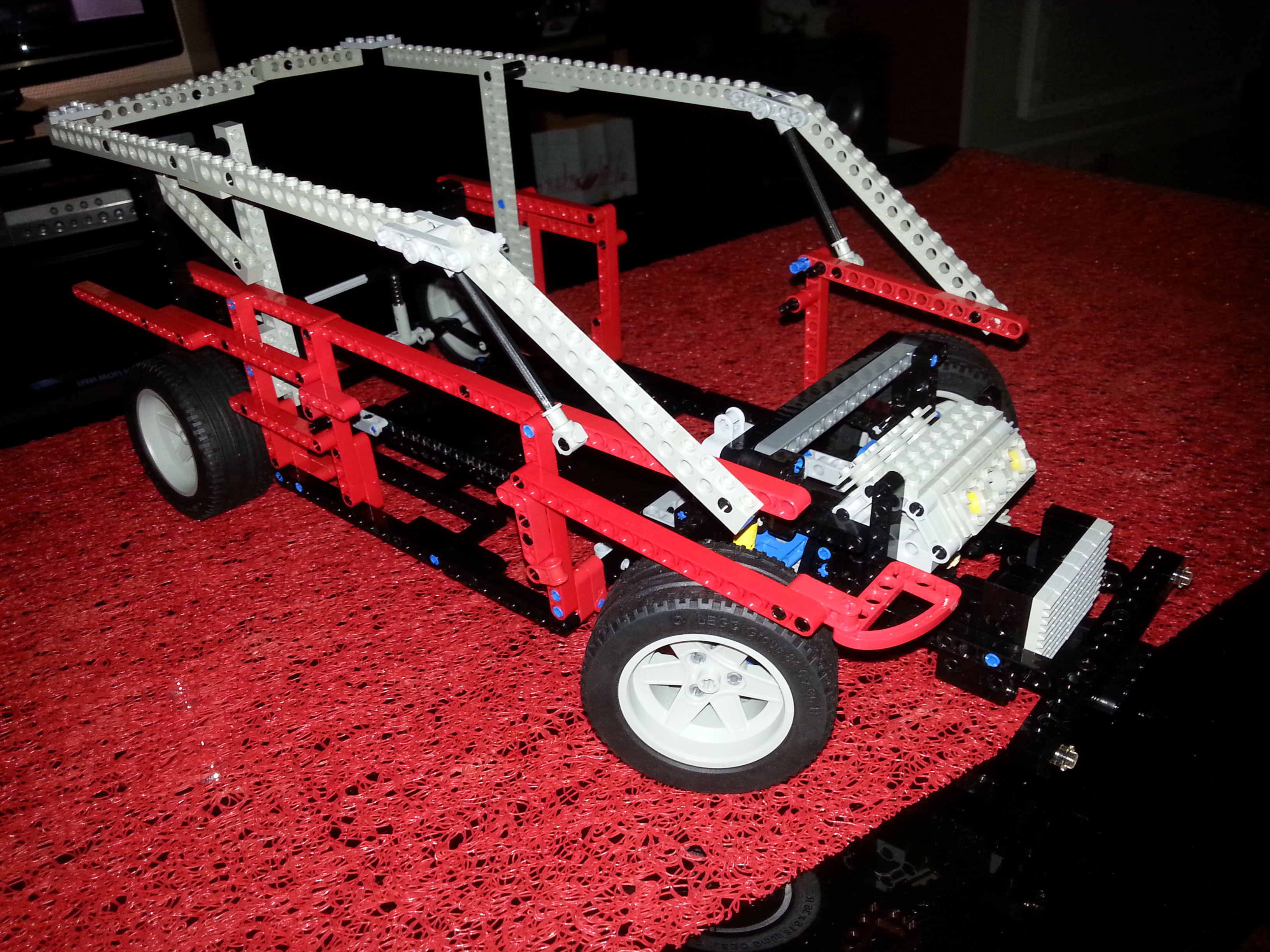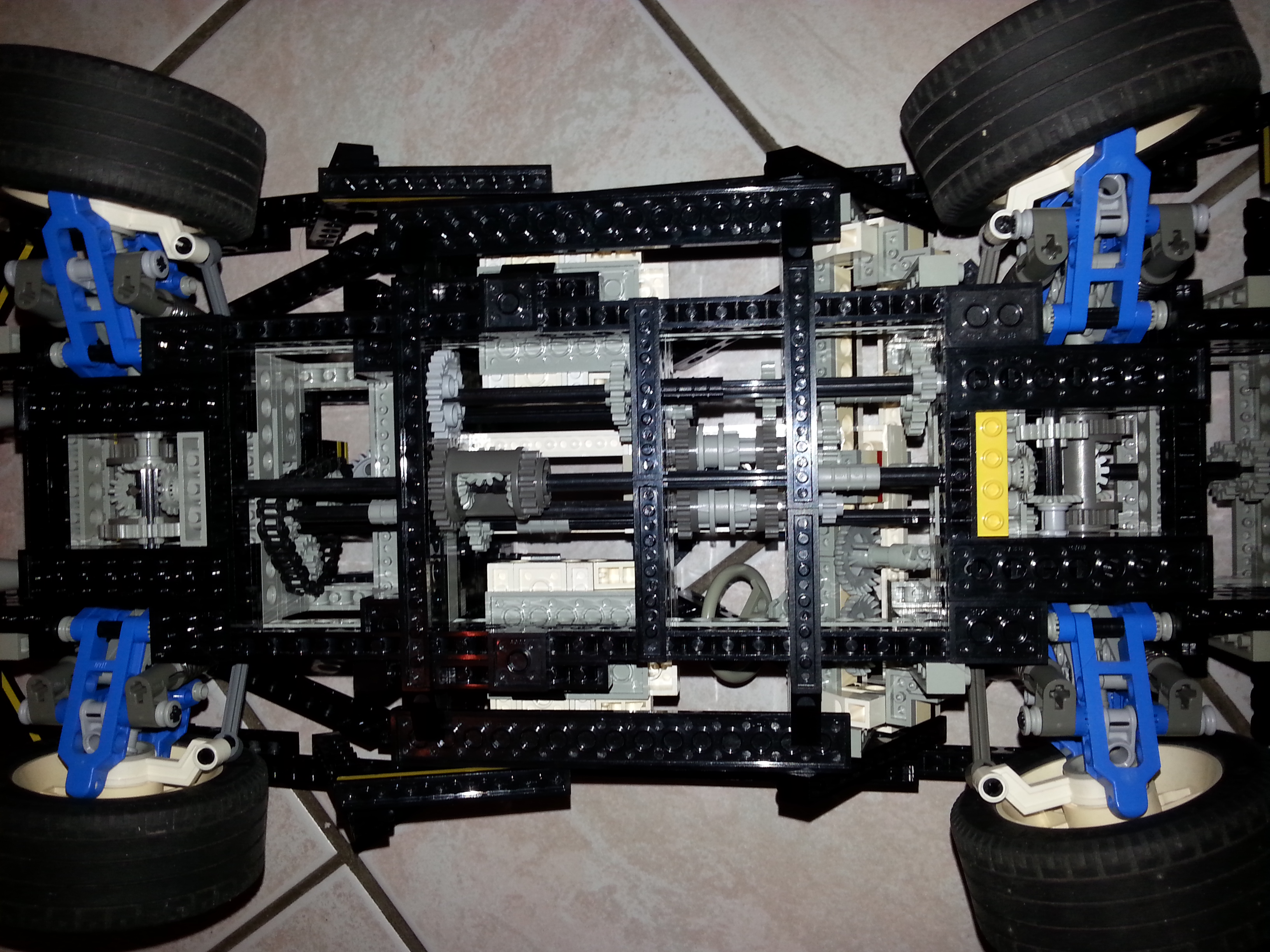 Magnifique réalisation. Pour le volant sur le toit j'hésite encore. Je vais tester ce soir. Pour la boîte de vitesse je peux en faire une 5 vitesses avec la marche arrière mais l'intégration est impossible. Les Lego technic supportent mal les moteurs transversaux et les tractions MDR. Tous les modèles qui sont sortis ont les moteur longitudinaux et sont soit des propulsions soit 4x4.