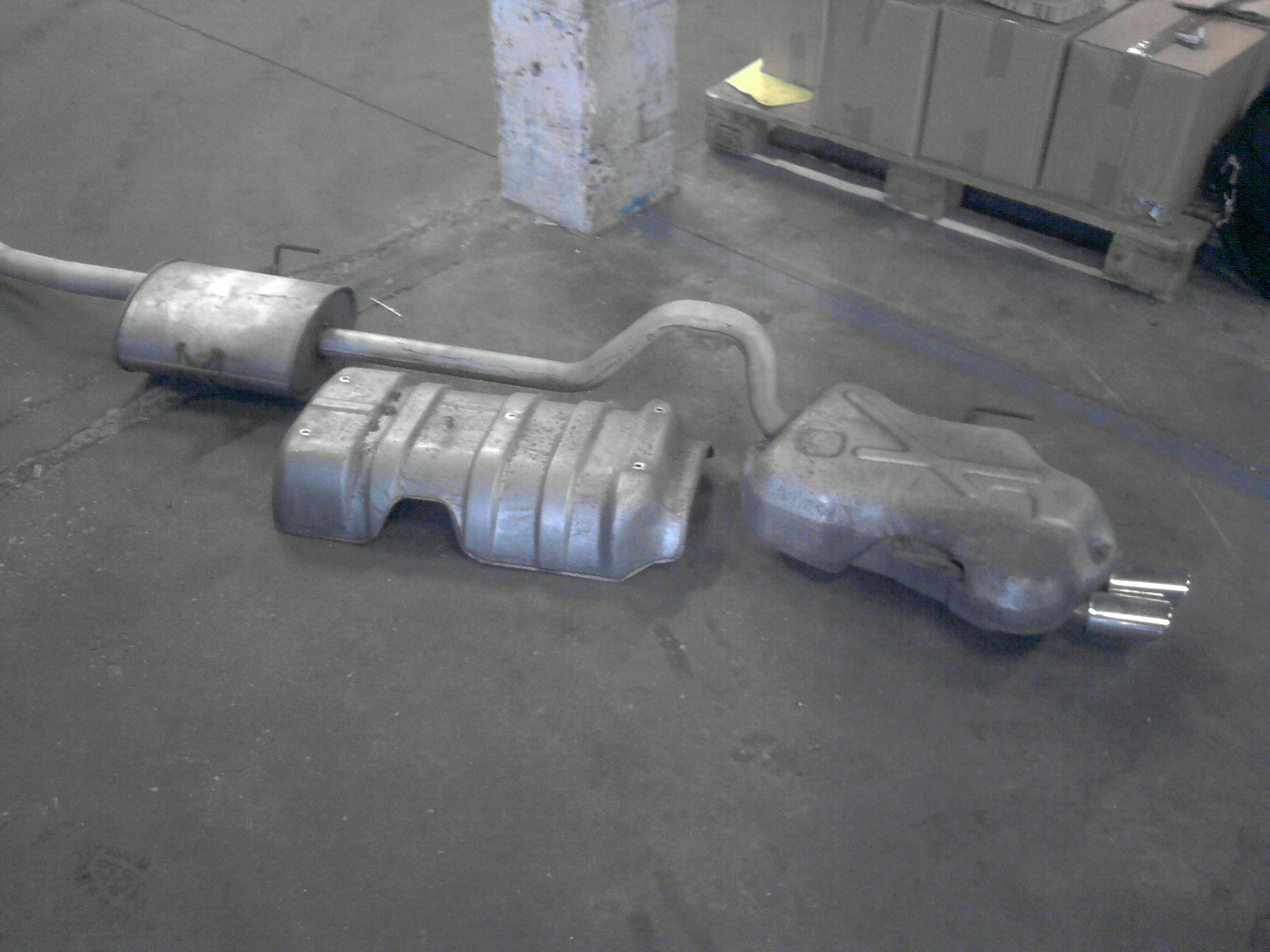La ligne d'échappement d'origine a un seul défaut, elle a lâché au niveau de la soudure de sortie de l'intermédiaire (comme d'habitude), mais une fois réparée, ça fait une lige quasi neuve !!!! et surtout plus solide que neuve avec ne vrai soudure de pro.