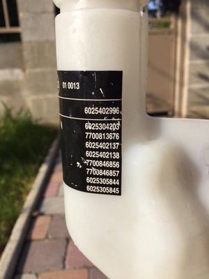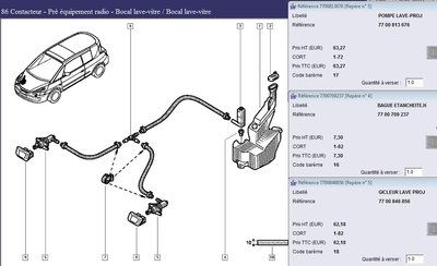 J'ai avec : le bouchon et le tuyau de jauge (6025304464), ainsi que les 2 bagues d'étanchéité sur lesquelles tu enclipses les pompes : celle pour les laves-glaces (7705002060) et les laves-projecteurs (7700709237).