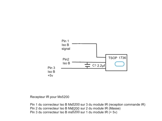 pour le module IR il faut se connecter sur le connecteur ISO B du ms5200 en :