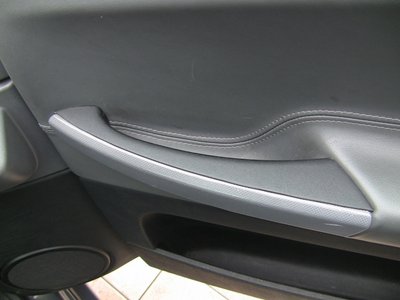 La poignée-accoudoir qui souffre du pb de peinture qui se barre avec le temps, la mienne est noire sur le dessus et il y a une 2eme plaque facon alu en dessous.