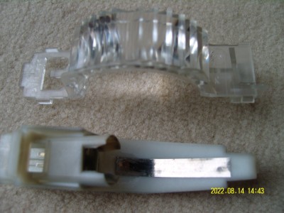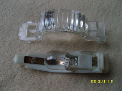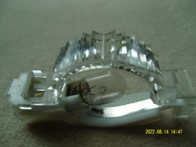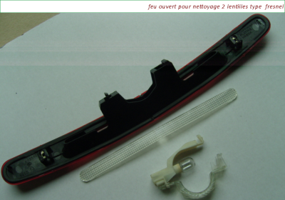 Lors du dernier démontage, j'en ai profité pour améliorer un peu, l'éclairement du plastique rouge. Après démontage du dispositif des lentilles et nettoyage soigneux, j'ai ajouté un petit réflecteur, collé sur la partie concave blanche, derrière l'ampoule et cela est bien moins mal, voir photos: