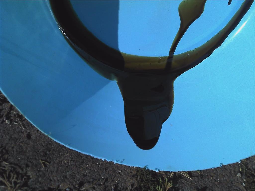 J'ai laissé la bassine verticale 10 mn pour que l'huile coule au fond pour avoir une idée.
