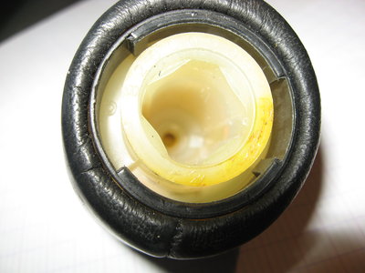Attention sou peine de casser les ergots de la piece plastique noir qui est emboitée dans le pommeau par rotation :