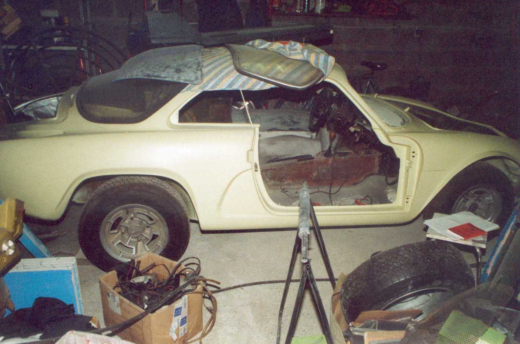 restaurée en 2002 je l'ai acheté sur ses roues mais toute démontée .La caisse était en apprêt et les ouvrants a refaire ainsi que la mécanique et l’intérieur