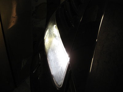 - Remettre le cache lampe xénon en le remettant dans les rainures du bas de chaque coté (Attention de ne pas coincer les fils).