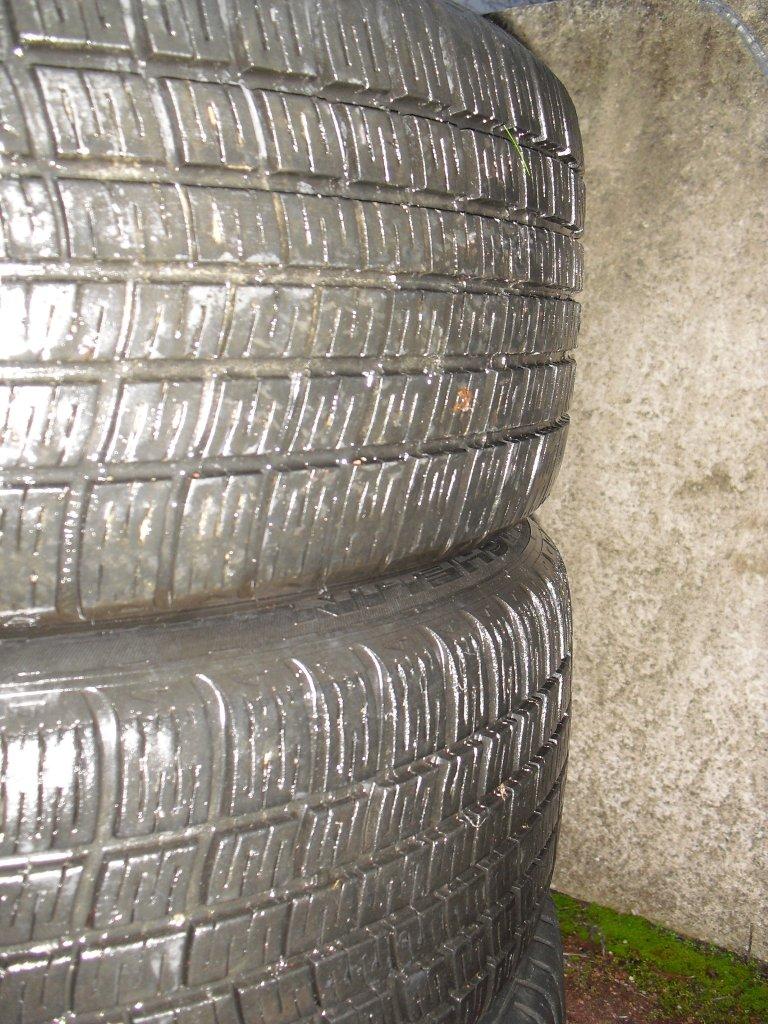 2 d'entre elles sont montées en pneus Michelin Alpin 225/45R17 91H (DOT 3002), mais un des deux pneus bien qu'avec une bande de roulement encore bonne est HS (hernie sur l'intérieur).