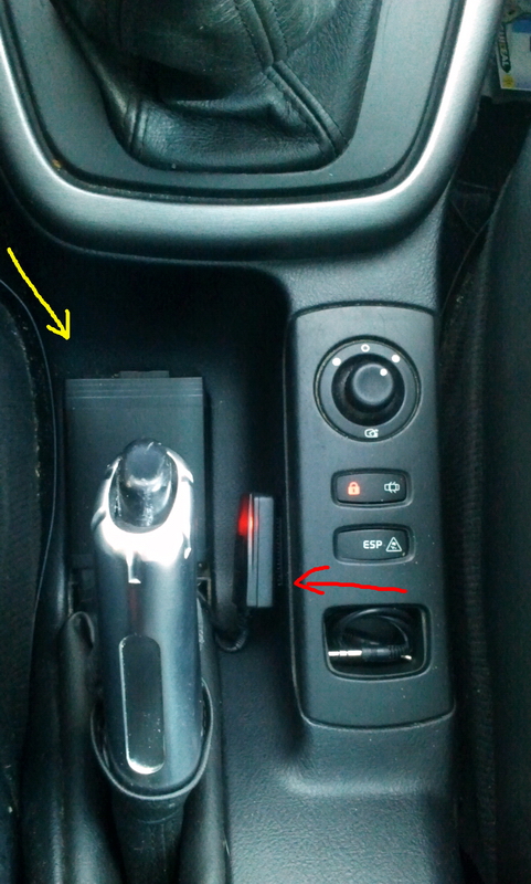 Pour l'installation je n'ai effectué aucun perçage. Il est situé dans le compartiment sous le GPS dans les version Privilége. Pour le passage du cable j'ai juste enlever une petite trappe en haut à gauche.