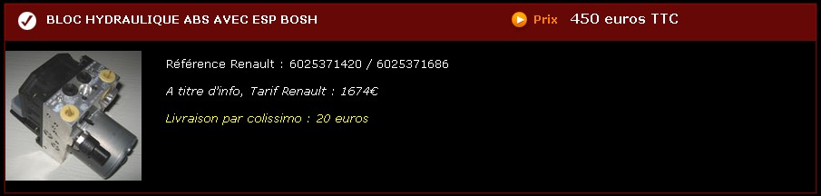 Re: [RECHERCHE] Bloc Hydraulique ABS pour V6 avec ESP