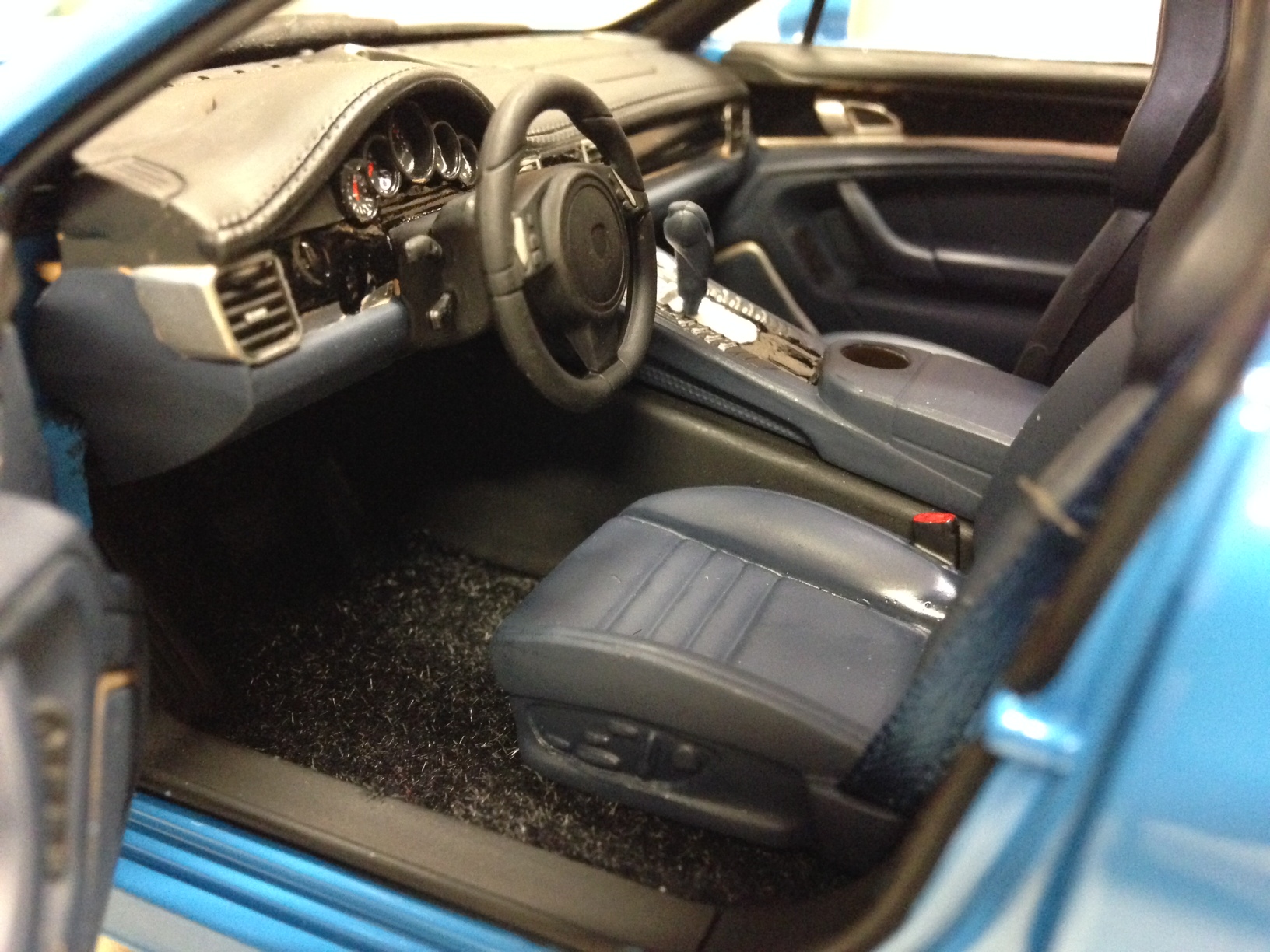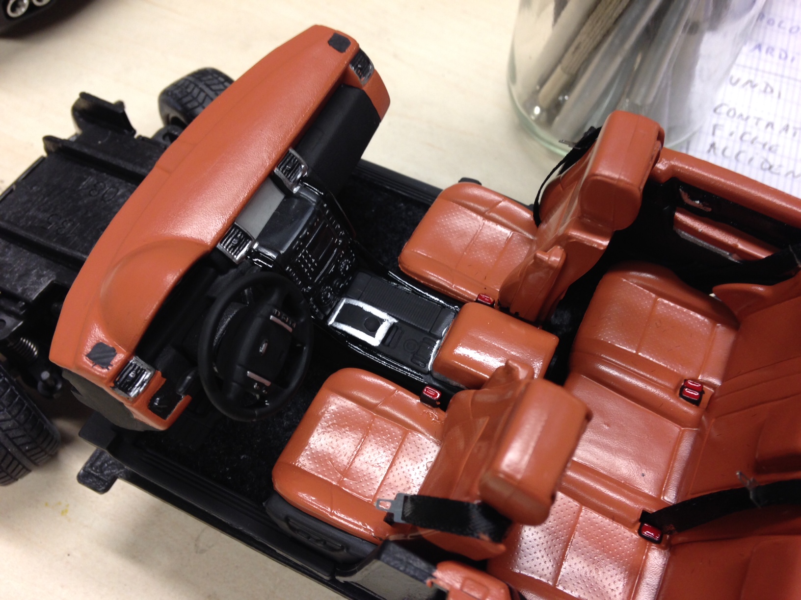 Pour les sièges et la moquette oui j'applique des revêtements "secret" ;) les ceintures sont également en tissus et métal.