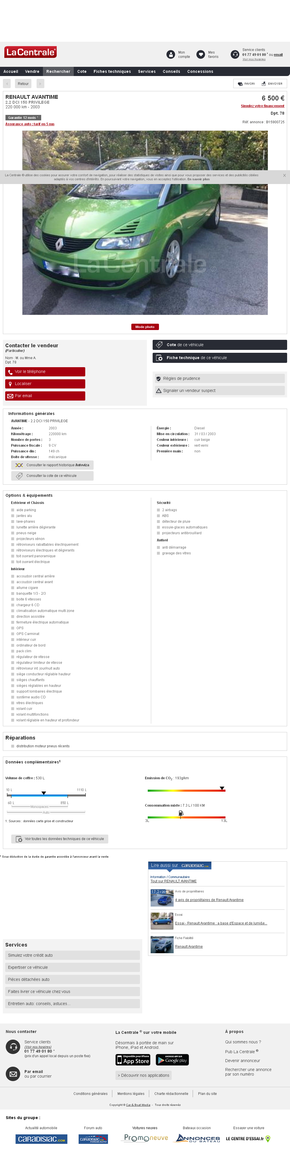 V6 BVA Privilège, Bleu Méthyl, cuir 03, DEOT T004002,120053kms au 31/10/2016