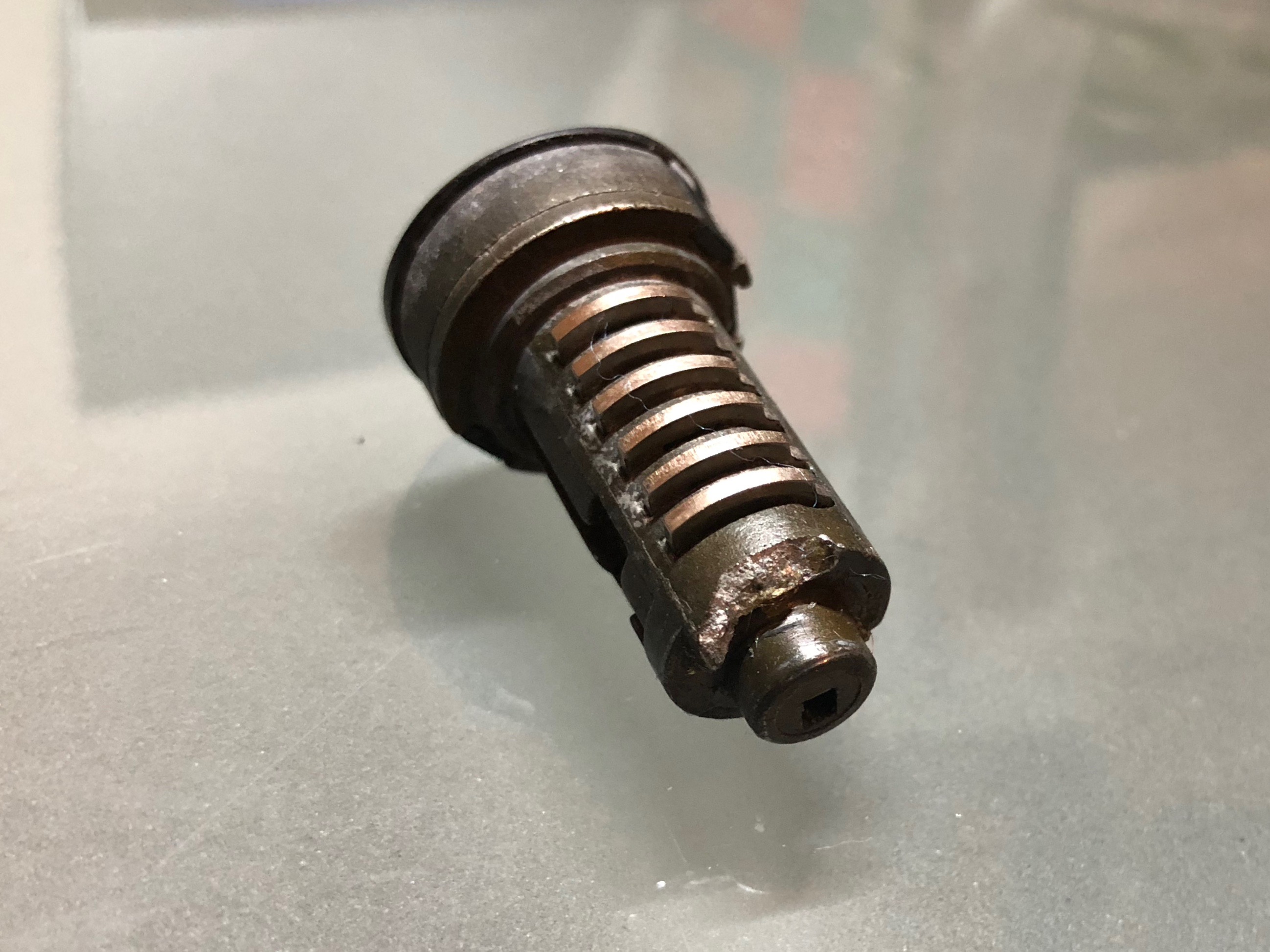Du coup, avis à ceux qui tardent (comme moi) à remplacer une télécommande défaillante ! La serrure a l'air particulièrement fragile (observez la finesse de la jonction du barillet avec le reste de la serrure) et n'a pas l'air conçue pour être manipulée tous les jours.