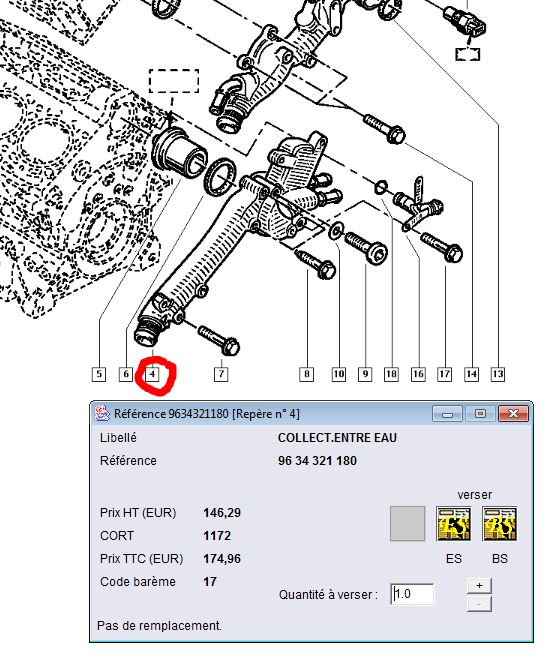 La boîte à eau (réf. 96 34 321 180) présente une légère fuite. La pièce n'est plus disponible chez M. Renault.