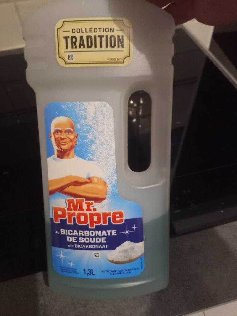 voici le copain nettoyage (Mr propre bicarbo soude) que j'ai versé dans un pshiiit à carreau (ou spray nettoyant vitre)