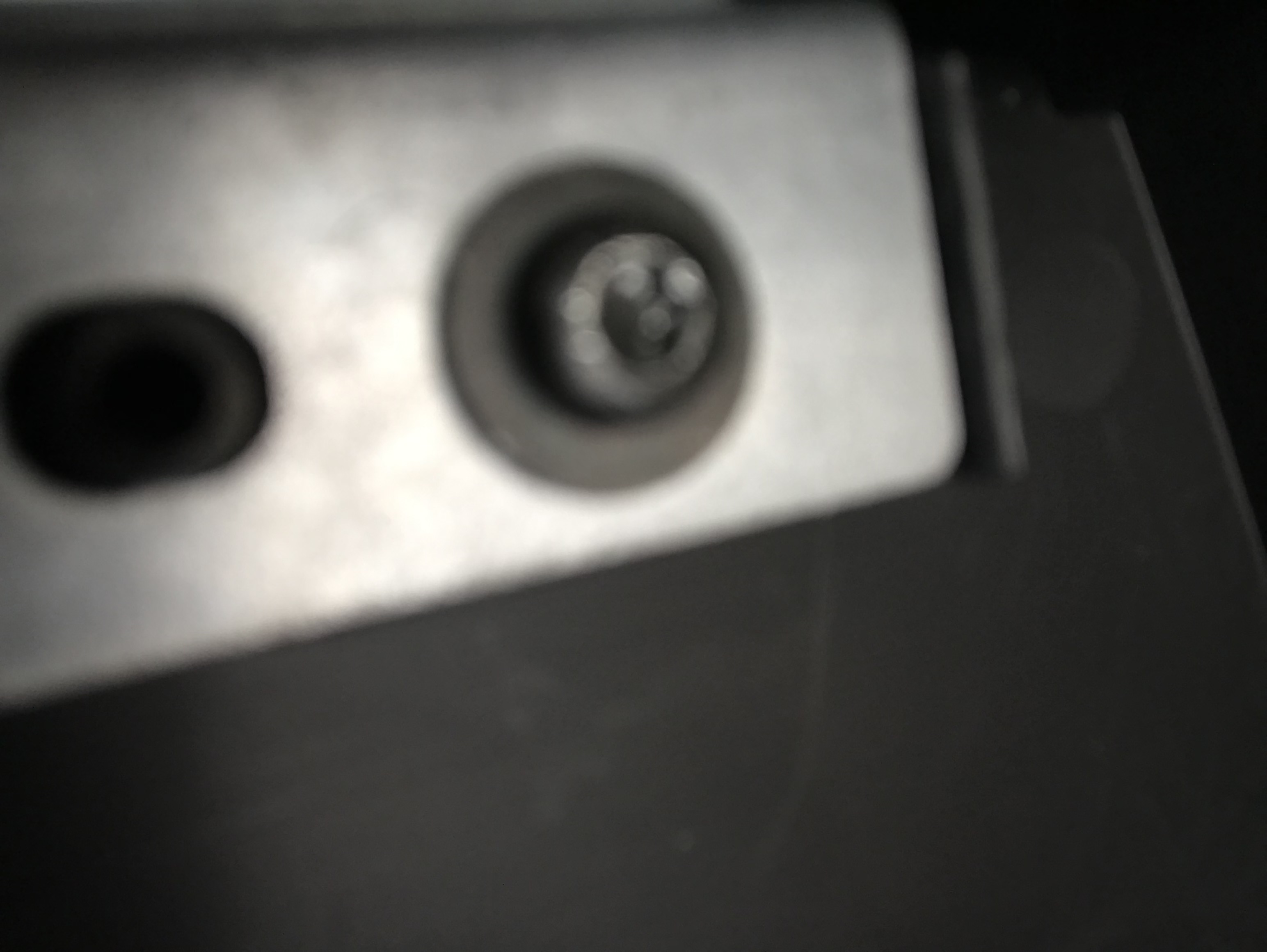 Enfin repositionner le tiroir sur ses rails, il y a un pion de centrage derrière les vis Tork. Pas beaucoup de place pour mettre un tournevis donc plus facile en ouvrant le couvercle de l'autoradio pour passer un outil.