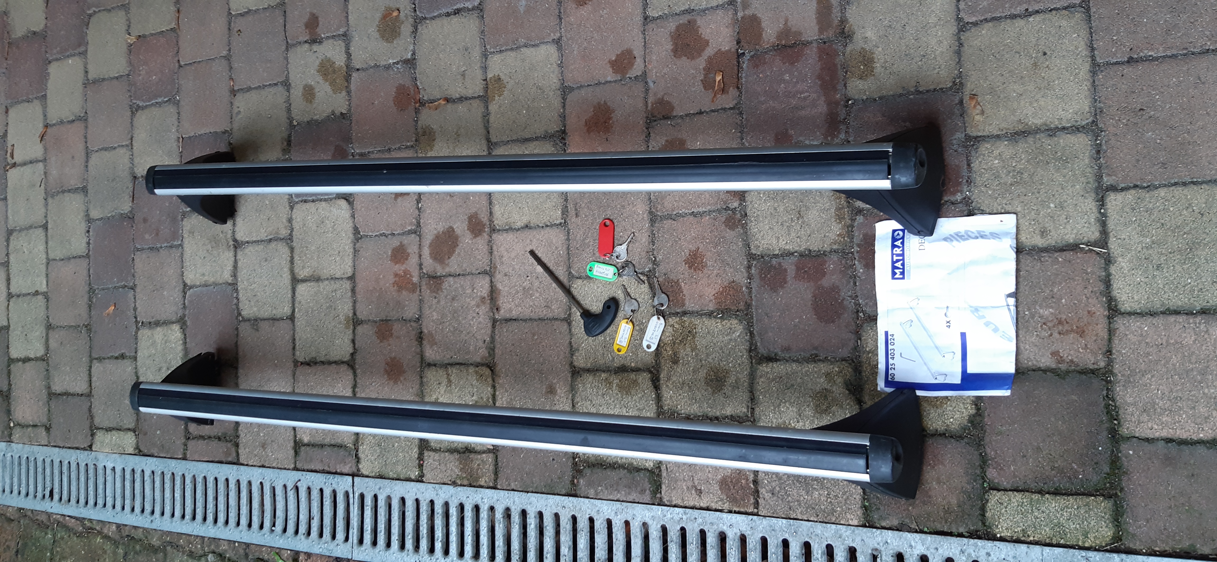Pour le compte d'un ami, je mets en vente un jeu de barres de toit d'origine Avantime. Une toute petite pétouille esthétique sur l'un des support. Livrées avec les 4 clés, l'outil de serrage et la notice.