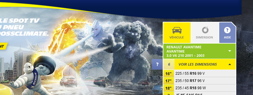 Les pneux homologués pour l'Avantime sont des Michelins PRIMACY.