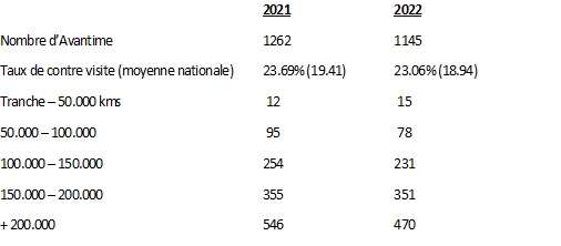 En attendant les chiffres 2023 Contrôle Technique voici ceux de 2022 comparés à ceux de 2021: