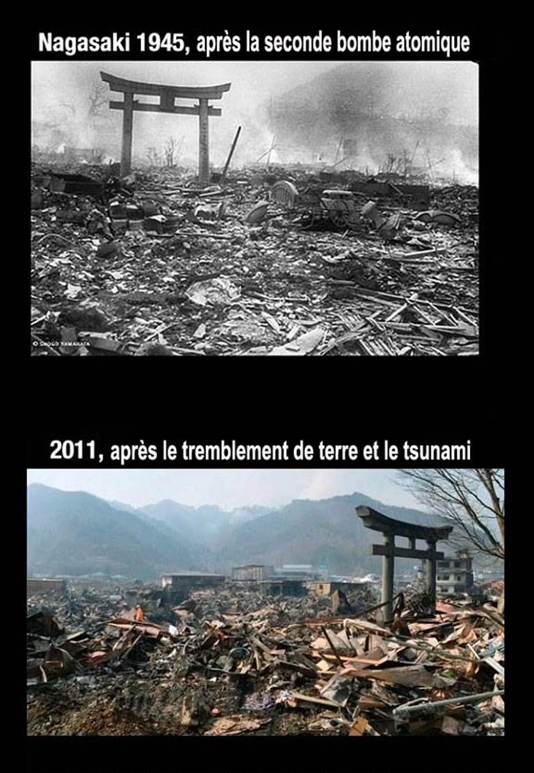 Voyez la puissance de la bombe atomique en 1945 et la force de la nature après Le tsunami en 2011, une question vous vient logiquement à l’esprit…