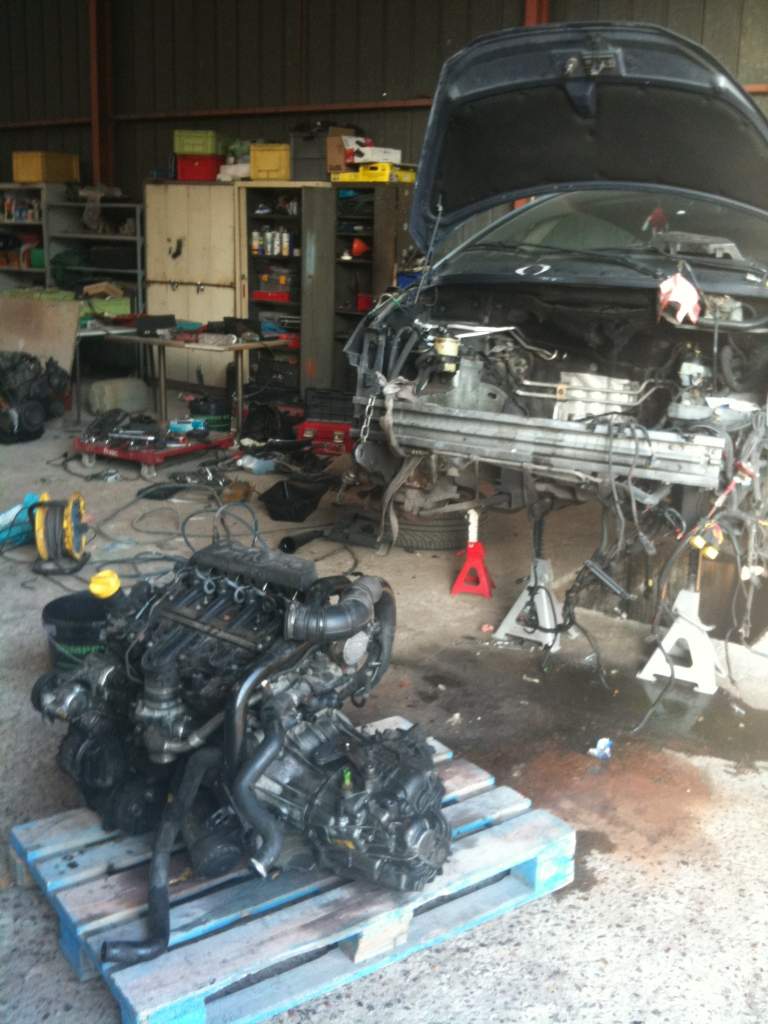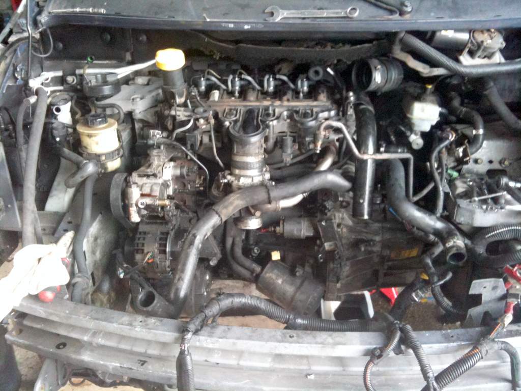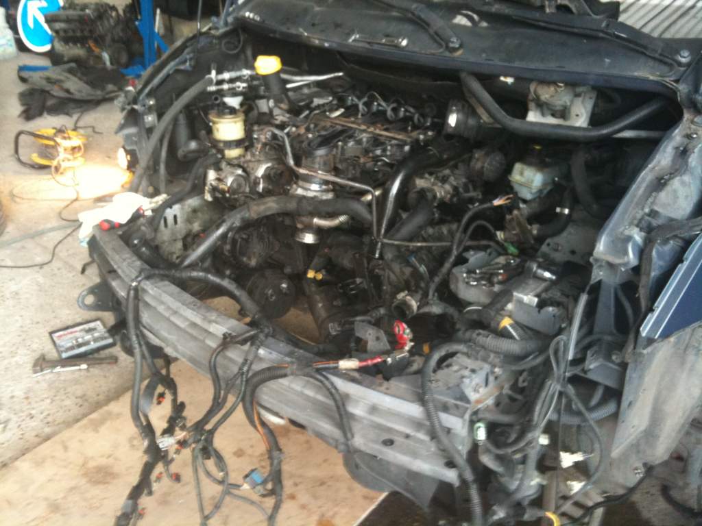 la première photo est le moteur que j'ai trouver avec ca boite, il vient d'un espace IV qui avait moins de 80 000 km. évidament il y a quelque petite modife à faire. reprendre tous mon ancien câblage, changer les injecteurs par des neuf que j'ai pu avoirs, refaire la courroie de distrib. avec la pompe à eau. changer l'embrayage. changer quelque tuyau d'aire. bref des petite bricole si j'ose dire. le plus dur sera de remettre tous les files correctement à leur place. heureusement que j'ai un bon mécano avec moi. j'espère qu'elle sera terminer pour la fin du mois. je vous remets encore des photos, ainsi que celle du nouveau moteur.