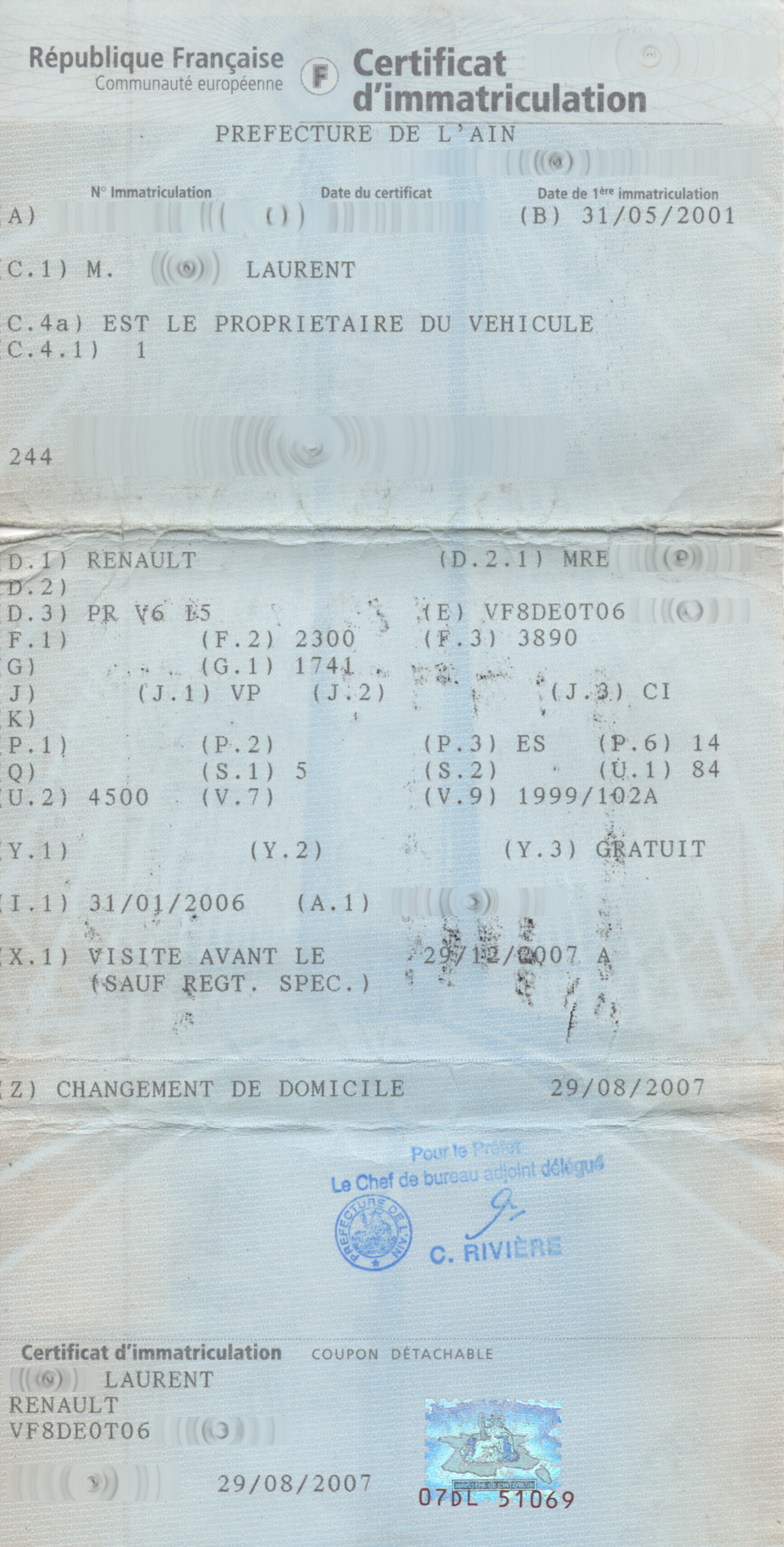 T'as de la chance ils ont pas confondu avec nouveau scenic.Wattman a écrit :Bon je viens de recevoir la carte grise, et le "PR V6 I5" s'appelle désormais "NOUVEAU MODELE"