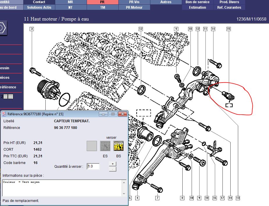 Je te dirai bientôt, car je récupère la pièce demain chez Renault (prix confirmé : 64,09€HT