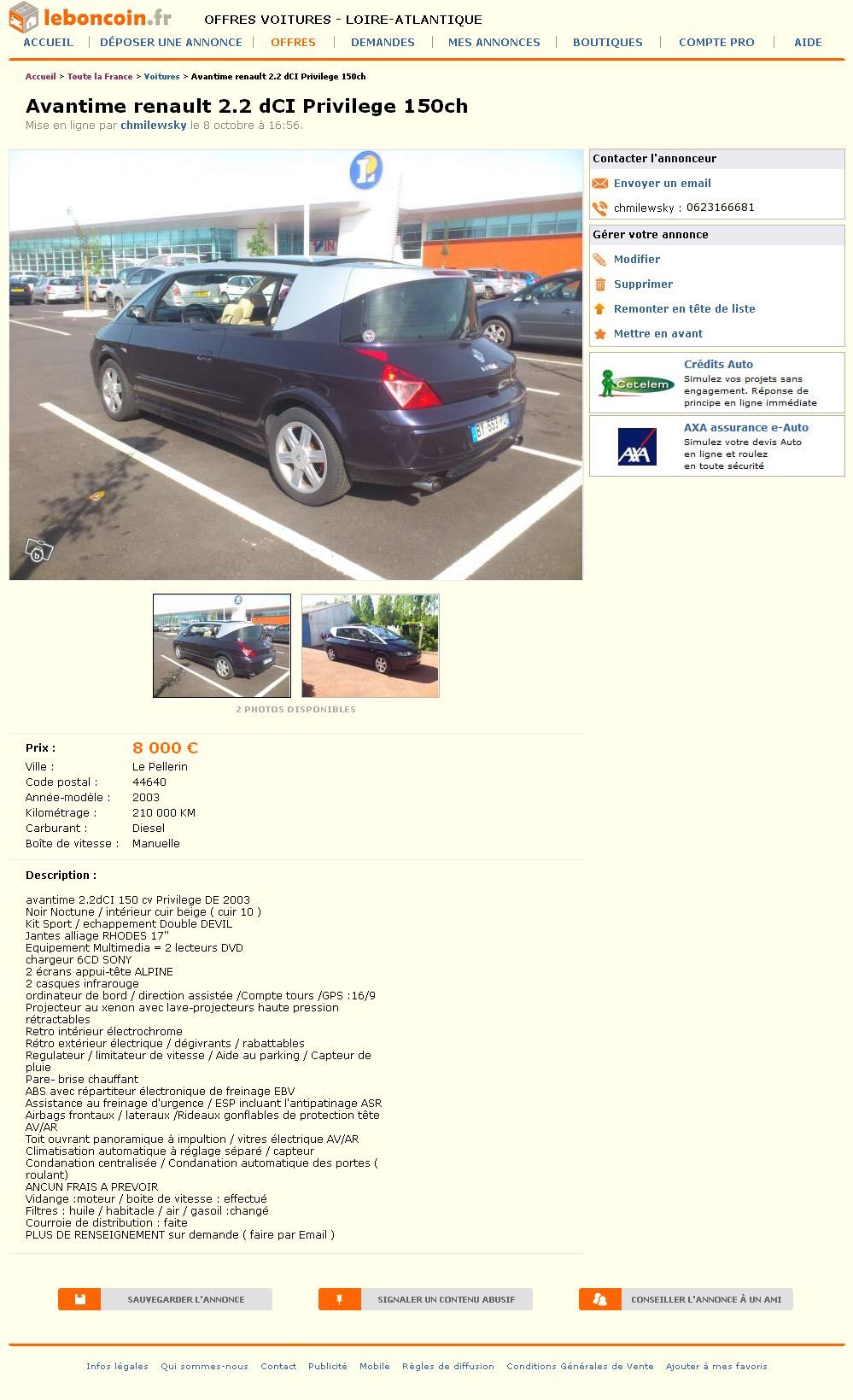 Avantime renault 2.2 dCI Privilege 150ch Voitures Loire-Atlantique - leboncoin.fr 2012-10-09 20-21-21.png
