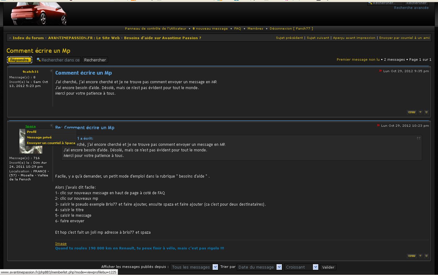 Si vous souhaitez discuter en privé avec un des membres, par exemple pour échanger des coordonnées et données privées, utilisez les MP..