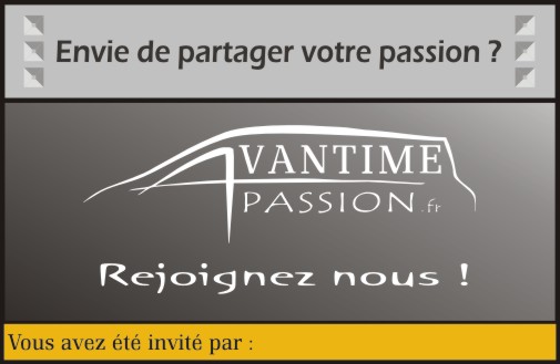 Je ne sais pas créer mais je sais écrire et je verrais bien pour les cartes de visite AP, sur un fond noir, au milieu haut, la photo du proto de dos comme sur le forum et dans le bas, l'inscription pour inviter les propriétaires à rejoindre Avantime Passion.