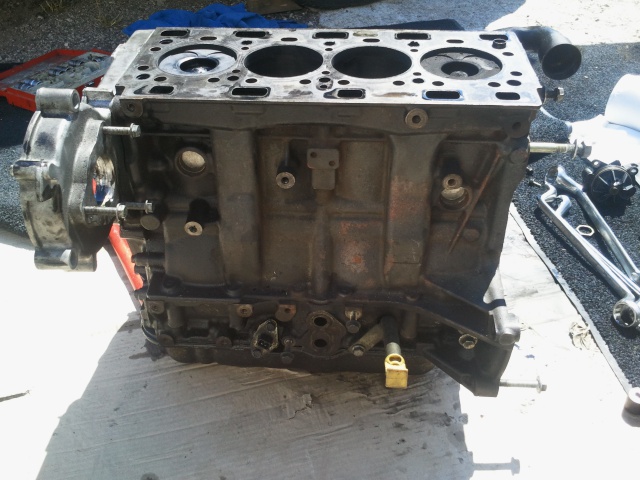 - Dépose du moteur boite, ensuite je vais déculasser pour faire contrôler la culasse, nettoyage du bloc complet, contrôle des usures, cylindres, vilebrequin,volant moteur embrayage, montage de coussinets, distribution , pompe à eau, remontage des injecteurs, du turbo et de la vanne egr qui sont déjà neufs, contrôle du collecteur d'admission. remontage du moteur boite sur la voiture.