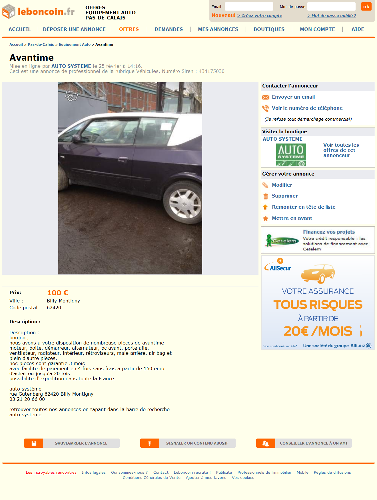 Re: Toutes pièces et équipements AVANTIME sur le bon coin