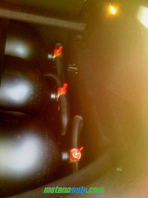 Primo piano delle valvole delle 3 bombole metano, in bell'ordine e comodamente azionabili sollevando il piano di carico.