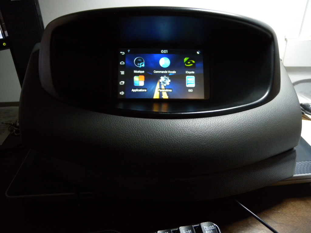 Maintenant, le top de la modernité est de mettre à la place de l'écran un Parrot asteroid tablet, du coup tu te retrouves avec un système multimédia main libre connecté, qui propose plein d'applications dont même Coyote.... :wink: