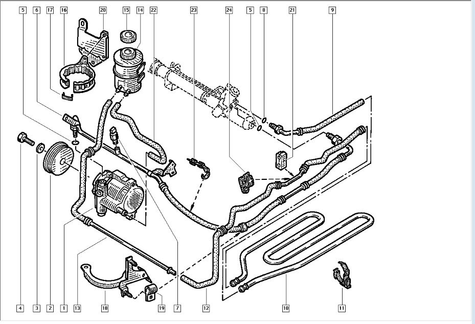 En ce qui me concerne la fuite est sur la durite qui va du refroidisseur à la crémaillère de direction donc sous pression, il faut baisser le berceau moteur pour y avoir acces...cela fait un mois que mon véhicule est chez renault en attente de pièce...je pense que sur les v6 laguna ou velsatis il y a les mêmes durites mais renault ne connait que les ref matra pour les avantimes espaces etc. quelqu'un aurait il le schéma de montage sur d'autres V6 renault ?, il faut que je leur mette sous le nez.