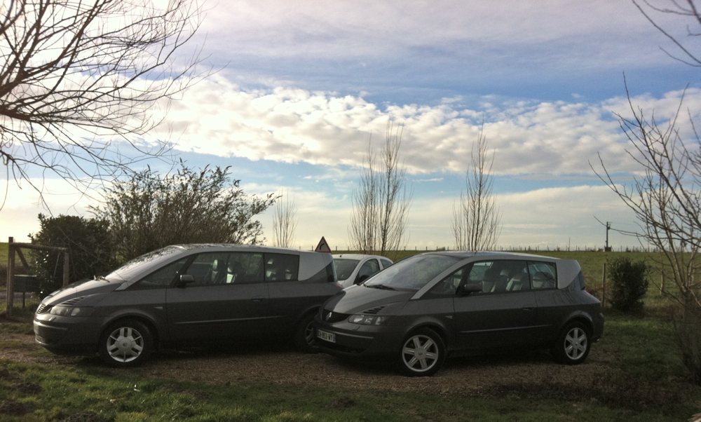 Ainsi, le Père Noël 2012 a déposé dans mes souliers un gris acier dynamique 2.2 DCI de 112 000 km. Lequel a été rejoint un an après par un gris acier privilège V6, boite 6 et PE2 gris perle de 158 000 km.