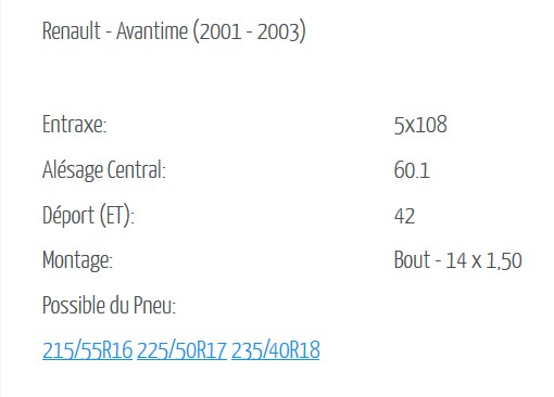 avec ces deux documents on voit que seul les jantes de l'Espace2, sont identiques à celles de l'Avantime. Il doit exister une "tolérance" acceptable pour mettre un déport plus grand, que je ne connais pas ,(contrairement à ce qui est mentionné sur le document de compatibilité, qui mérite confirmation
