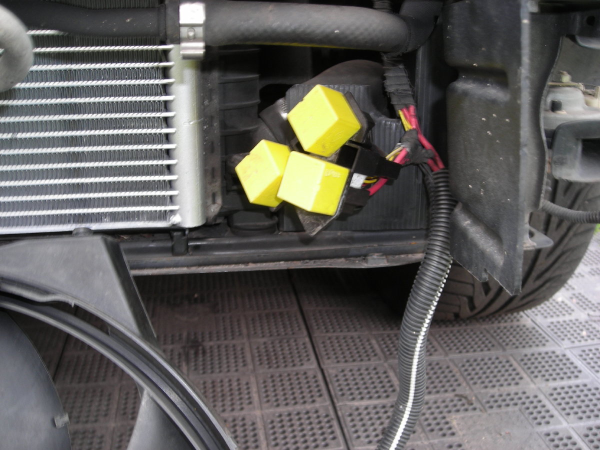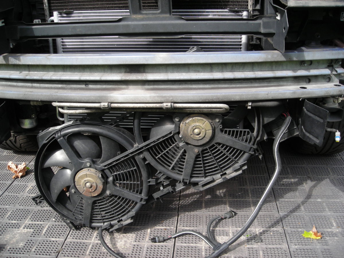 Pour sortir le bloc motoventilateur, il faut effectivement arriver à le décoincer des déflecteurs en plastique ondulé. Côté passager, il suffit de le déplacer en forçant un peu, et côté conducteur, il faut dévisser le support sur le châssis (2 vis de 10), ce qui permet de le pousser en arrière et ainsi de faire remonter librement le bloc ventilo pour le sortir des 4 tétons. Il reste ensuite le câblage électrique, qui évidemment n'a pas de connecteur pour pouvoir le démonter facilement. Il faut donc dégager tout le faisceau qui court en bas du groupe ventilo (connexion pressostat clim et connexion aux 2 ventilos, et sortir le bloc de 3 relais qui est dans une cavité du groupe ventilo côté conducteur. Cette cavité est fermée clipsée, difficile à ouvrir, mais une fois ouverte, on peut sortir tout le faisceau du groupe ventilo, le faisceau reste connecté à la voiture et les ventilos sortent par le bas (mettre la voiture sur chandelles).