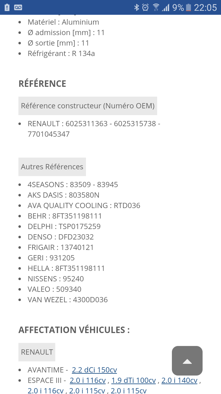 Pour la référence du condenseur, j'ai compris que pour le DCI il y avait le NRF 35634 (http://www.piecesauto24.com/nrf/2388968), mais pour le V6, il me semble que c'est celui-ci qui convient: NRF 35533 http://www.piecesauto24.com/nrf/2388870. Quelqu'un pour confirmer ?