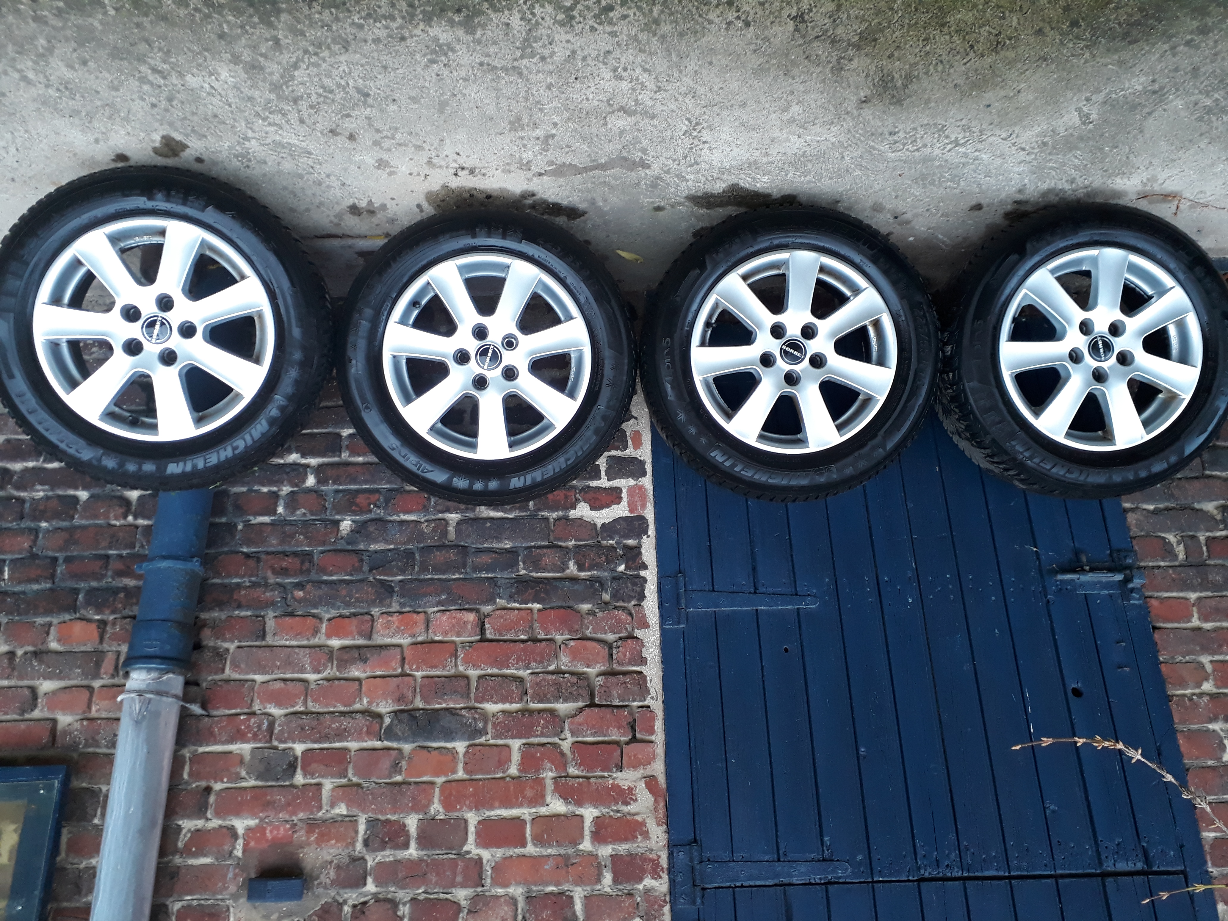 Je vends 4 jantes alu en 16" pour Avantime équipées de pneus Michelin Alpin 5 en 225-55-16.